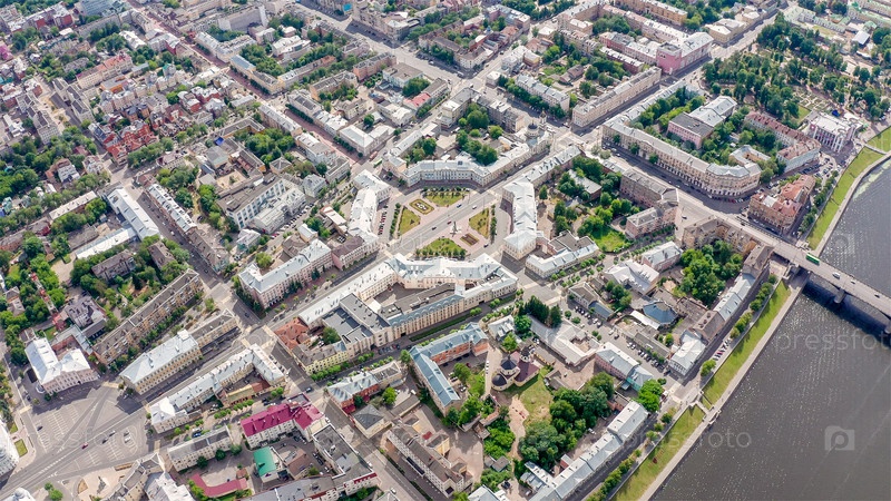 Панорама города Твери, Россия. С высоты птичьего полета. Площадь Ленина, с дрона