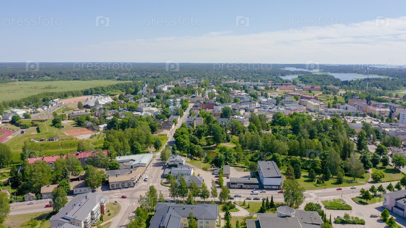 Хамина, Финляндия. Общий вид на центр города с воздуха в ясную погоду, с дрона