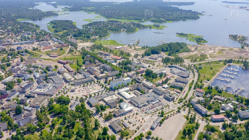 Хамина, Финляндия. Общий вид на центр города с воздуха в ясную погоду, с дрона