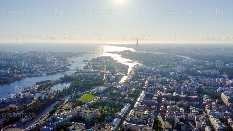 Россия, Санкт-Петербург. Река Нева. Панорамный вид с воздуха. Мост Бетанкур, Западный скоростной диаметр, Лахта Центр. Штаб-квартира Газпрома, From Drone