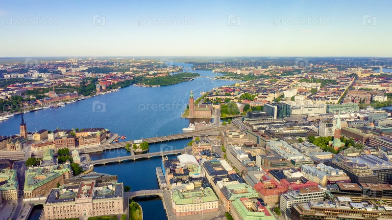 Стокгольм, Швеция. Панорамный вид с воздуха на центр города, с дрона