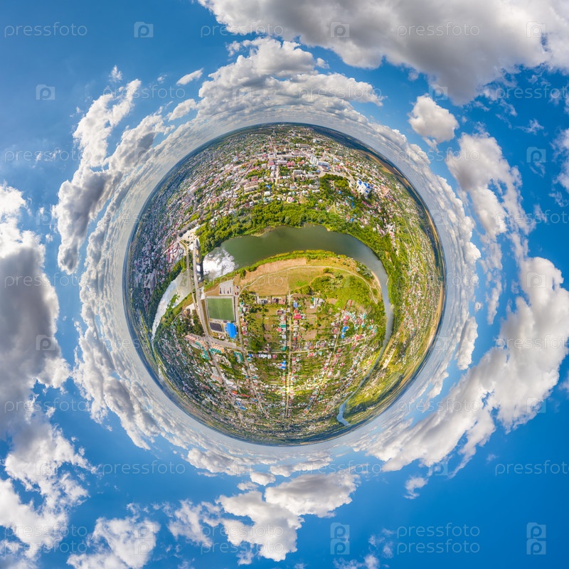 Елец, Россия. Панорама центра города. 360-градусный панорамный астероид