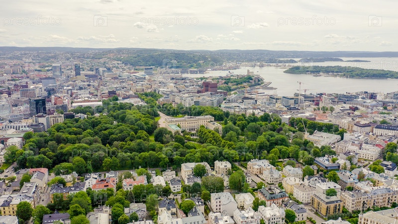 Осло, Норвегия. Королевский дворец. Слотсплассен. Дворцовый парк, От дрона