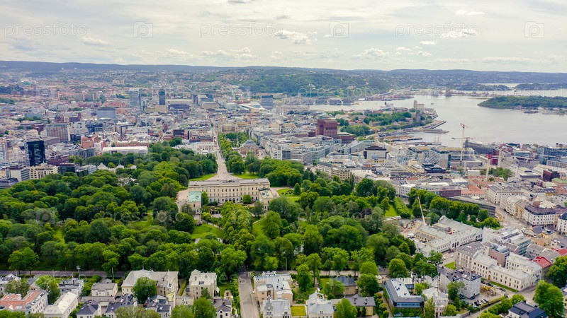 Осло, Норвегия. Королевский дворец. Слотсплассен. Дворцовый парк, От дрона