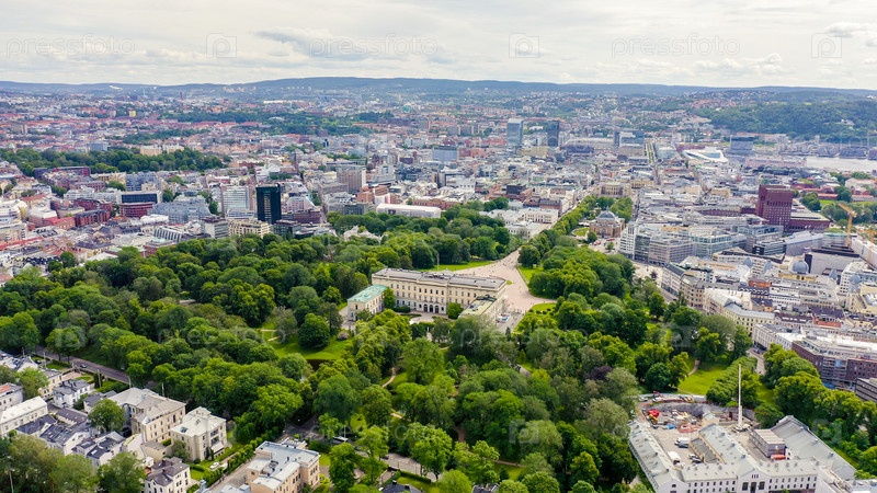 Осло, Норвегия. Королевский дворец. Слотсплассен. Дворцовый парк, От дрона
