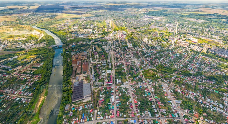 Елец, Россия. Панорама центра города. С высоты птичьего полета