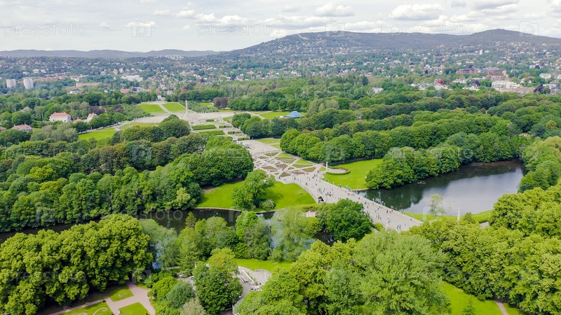 Осло, Норвегия. Парк скульптур Вигеланда. Вигеландпаркен. Парк Фрогнер, От дрона