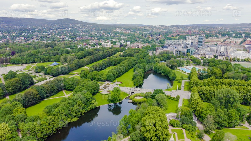 Осло, Норвегия. Парк скульптур Вигеланда. Вигеландпаркен. Парк Фрогнер, От дрона