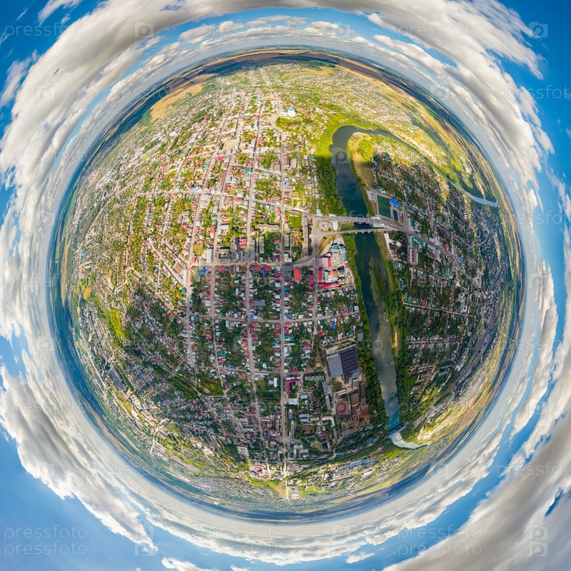 Елец, Россия. Панорама центра города. 360-градусный панорамный астероид