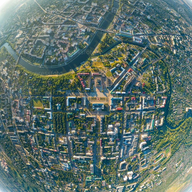 Орел, Россия. Панорама центра города с воздуха утреннего времени. С высоты птичьего полета