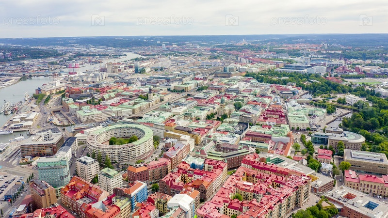 Гетеборг, Швеция. Панорама центральной части города. Пасмурная погода, С дрона