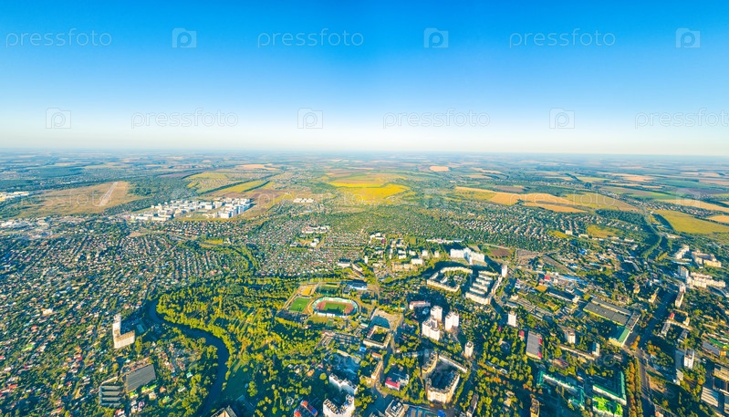 Орел, Россия. Панорама центра города с воздуха утреннего времени. С высоты птичьего полета