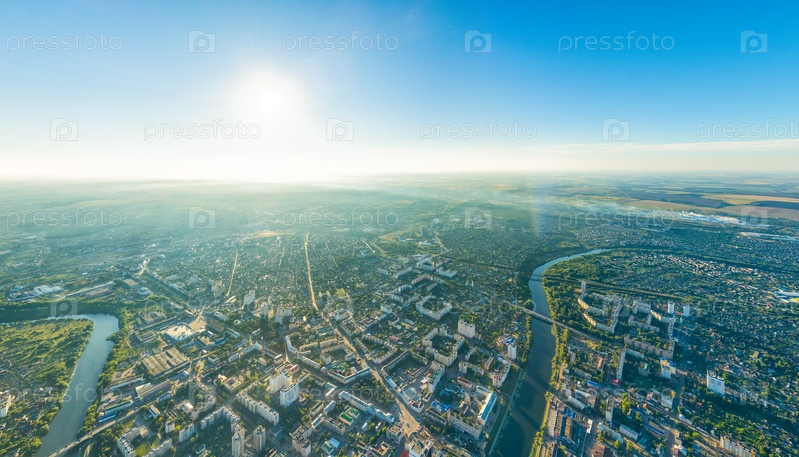 Орел, Россия. Панорама центра города с воздуха утреннего времени. С высоты птичьего полета