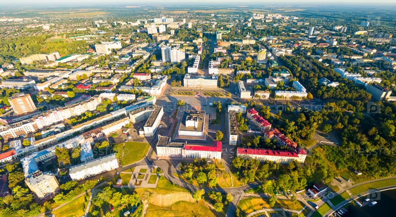 Орел, Россия. Панорама центра города с воздуха утреннего времени. С высоты птичьего полета