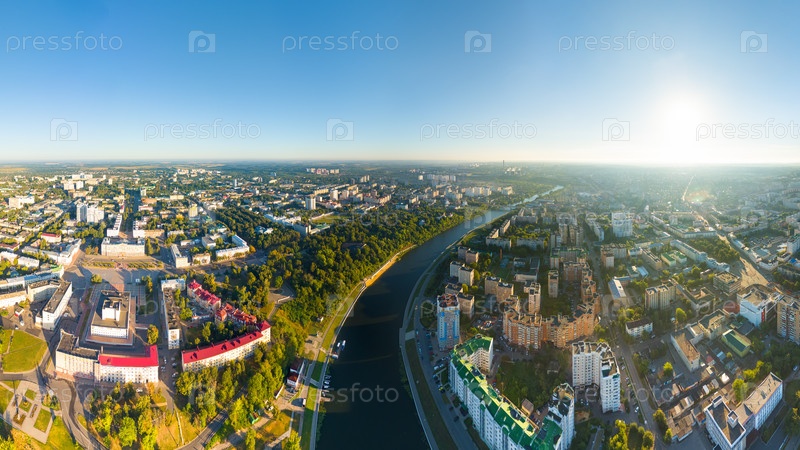 Орел, Россия. Панорама центра города с воздуха утреннего времени. С высоты птичьего полета