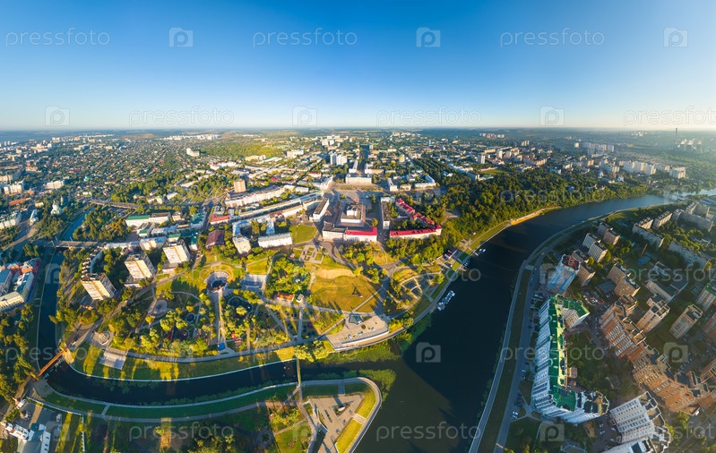 Орел, Россия. Панорама центра города с воздуха утреннего времени. С высоты птичьего полета