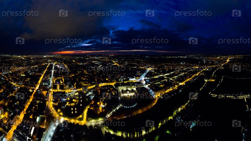 Липецк, Россия. Огни ночного города. Панорама. С высоты птичьего полета