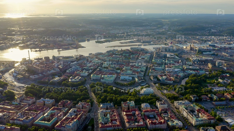 Гетеборг, Швеция. Панорама города и реки Гоэта Эльв. Исторический центр города. Закат, С Дрона