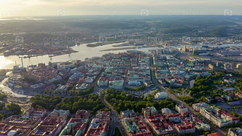 Гетеборг, Швеция. Панорама города и реки Гоэта Эльв. Исторический центр города. Закат, С Дрона