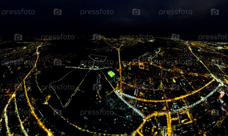 Липецк, Россия. Огни ночного города. Панорама. С высоты птичьего полета