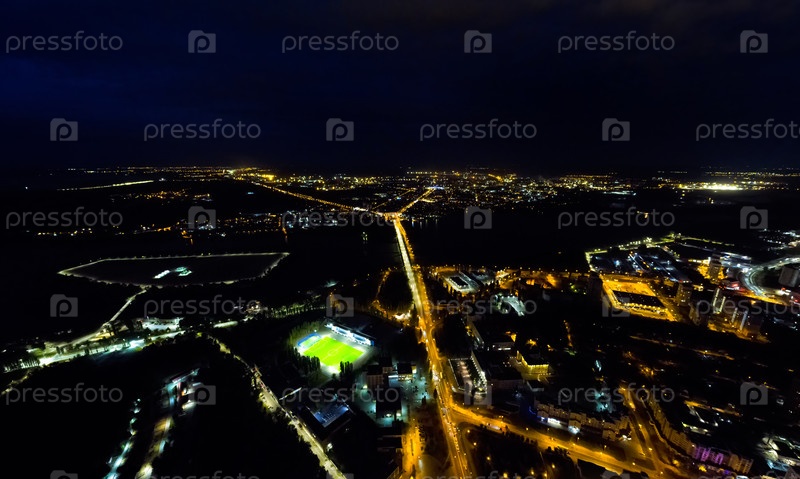 Липецк, Россия. Огни ночного города. Панорама. С высоты птичьего полета