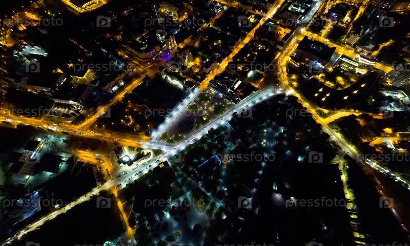 Липецк, Россия. Огни ночного города. Панорама. С высоты птичьего полета