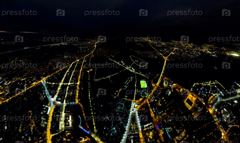 Липецк, Россия. Огни ночного города. Панорама. С высоты птичьего полета