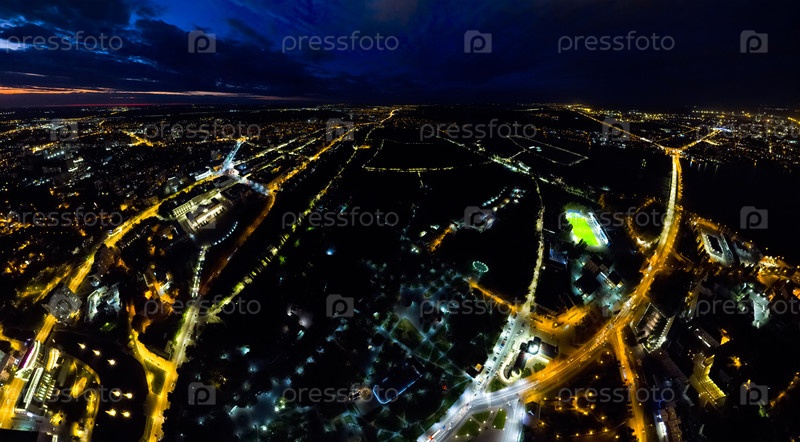 Липецк, Россия. Огни ночного города. Панорама. С высоты птичьего полета