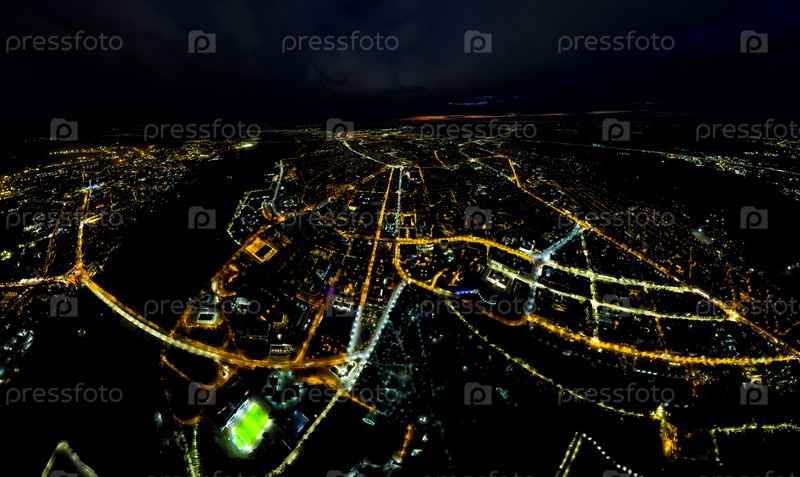 Липецк, Россия. Огни ночного города. Панорама. С высоты птичьего полета