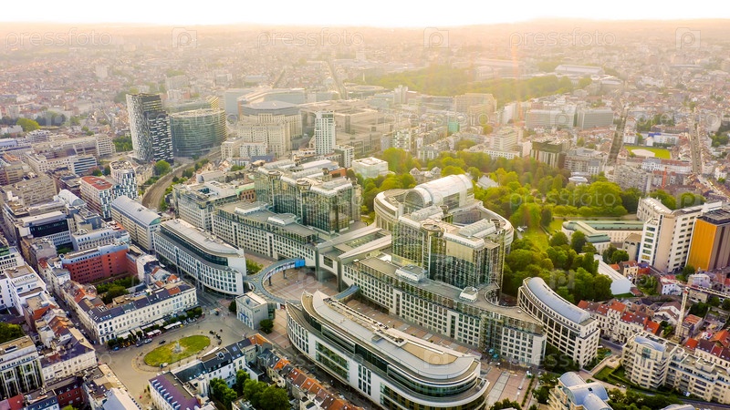 Брюссель, Бельгия. Комплекс зданий Европарламента. Государственное учреждение, Вид с воздуха