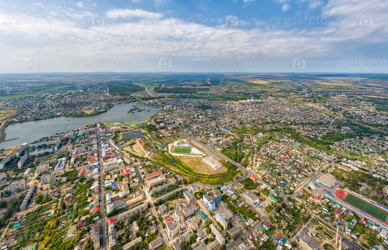 Сызрань, Россия. Панорама центральной части города с воздуха