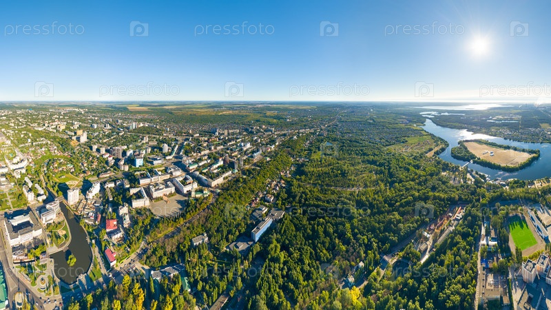 Липецк, Россия. Вид на город летом. Солнечный день. С высоты птичьего полета