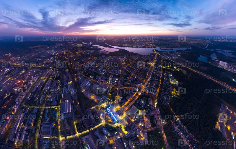 Липецк, Россия. Металлургический завод. Левобережный район. Сияние после захода солнца. Лето. С высоты птичьего полета