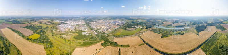 Кстово, Нижегородская область, Россия Нефтеперерабатывающий завод на трассе М7 Волга Южный обход Нижнего Новгорода Паноарма 360. Вид с воздуха