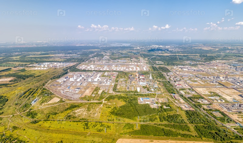 Кстово, Нижегородская область, Россия. Нефтеперерабатывающий завод на трассе М7 Волга. Южный обход Нижнего Новгорода. С высоты птичьего полета