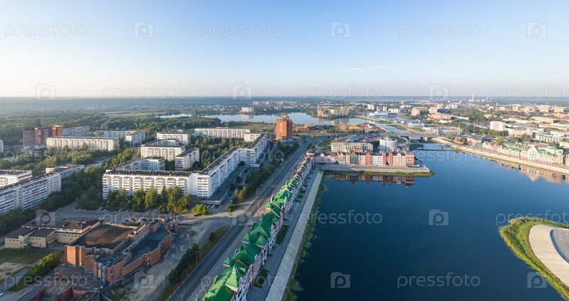 Йошкар-Ола, Россия. Панорама центра города утром. С высоты птичьего полета