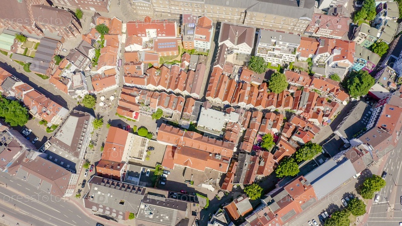 Бремен, Германия.Бремен Шнуор (Schnoorviertel).Вид в полете, вид с воздуха