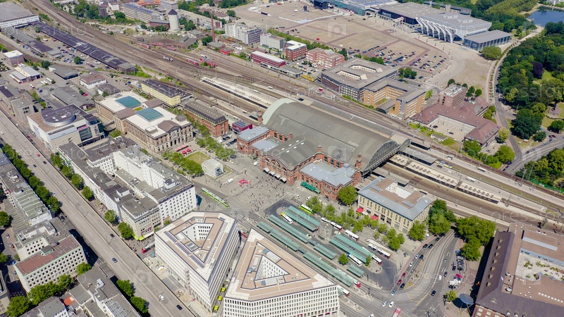 Бремен, Германия. Bremen Hauptbahnhof (по-немецки главный железнодорожный вокзал Бремена). вид в полете, вид с воздуха