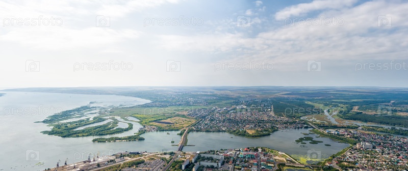 Сызрань, Россия. Исторический центр города. Место впадения реки Сызранки в Волгу. С высоты птичьего полета