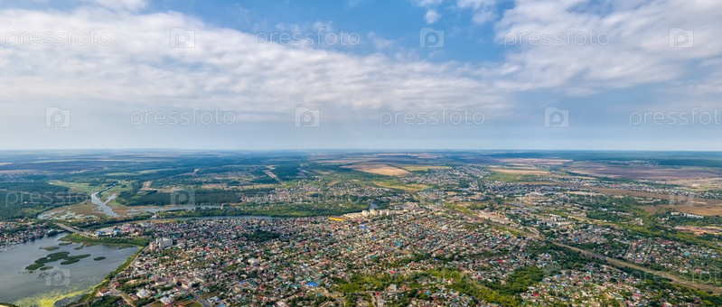 Сызрань, Россия. Исторический центр города. Место впадения реки Сызранки в Волгу. С высоты птичьего полета