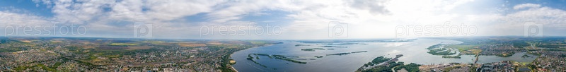 Сызрань, Россия. Аэрофотоснимок центральной части города. Вид на Волгу. Панорама 360