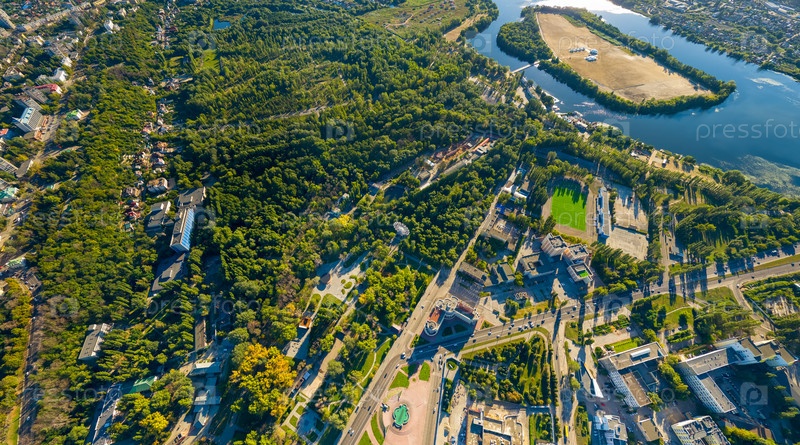 Липецк, Россия. Вид на город летом. Солнечный день. С высоты птичьего полета