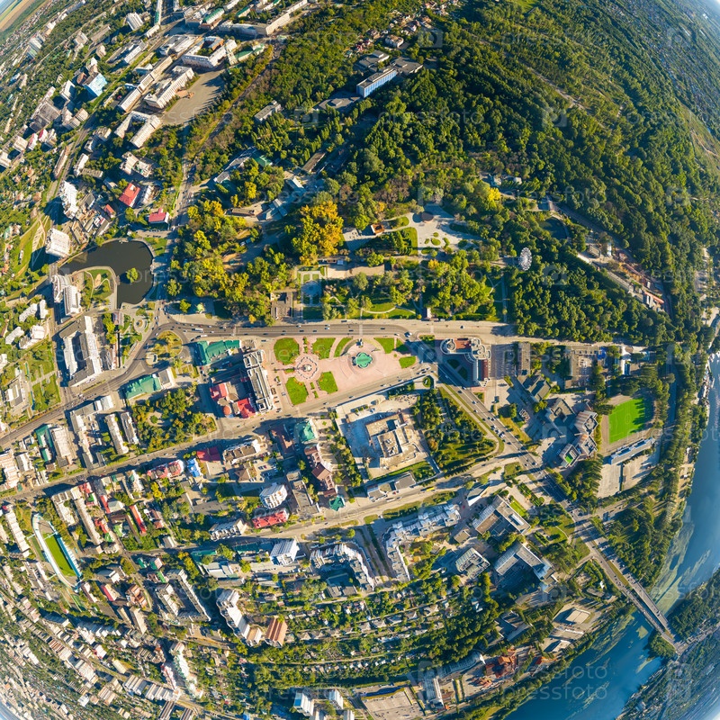 Липецк, Россия. Площадь Петра Великого. Вид на город летом. Солнечный день. С высоты птичьего полета