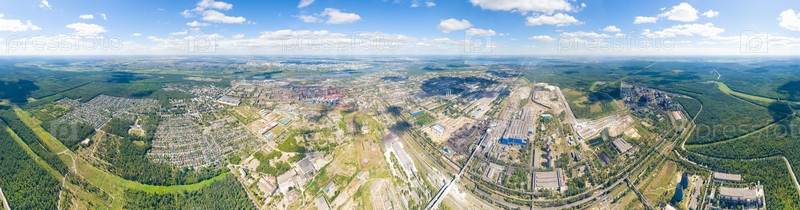 Липецк, Россия. Металлургический завод. Доменные печи. Вид на город летом. Солнечный день. Панорама 360. Вид с воздуха