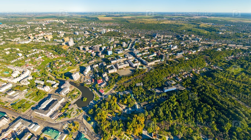Липецк, Россия. Вид на город летом. Солнечный день. С высоты птичьего полета