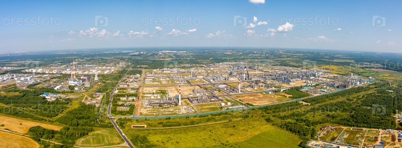 Кстово, Нижегородская область, Россия. Нефтеперерабатывающий завод на трассе М7 Волга. Южный обход Нижнего Новгорода. С высоты птичьего полета
