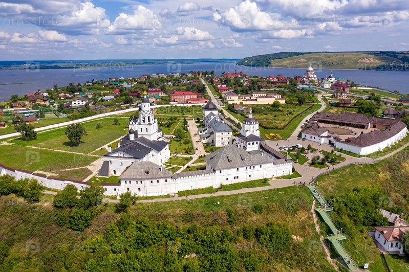 Свияжск, Россия. Вид с воздуха на Успенский собор и монастырь города-острова Свияжск