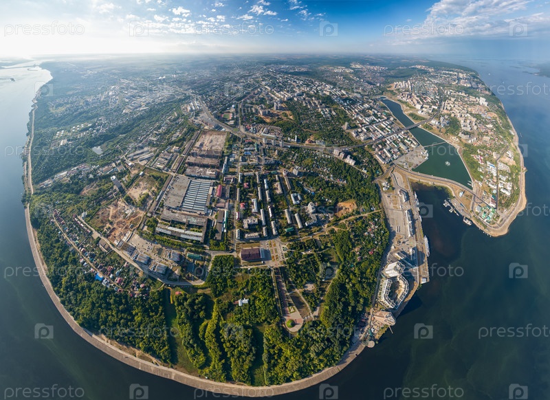 Чебоксары, Россия. Панорама города с воздуха. Чебоксарский залив. река Волга. Солнечный день. С высоты птичьего полета