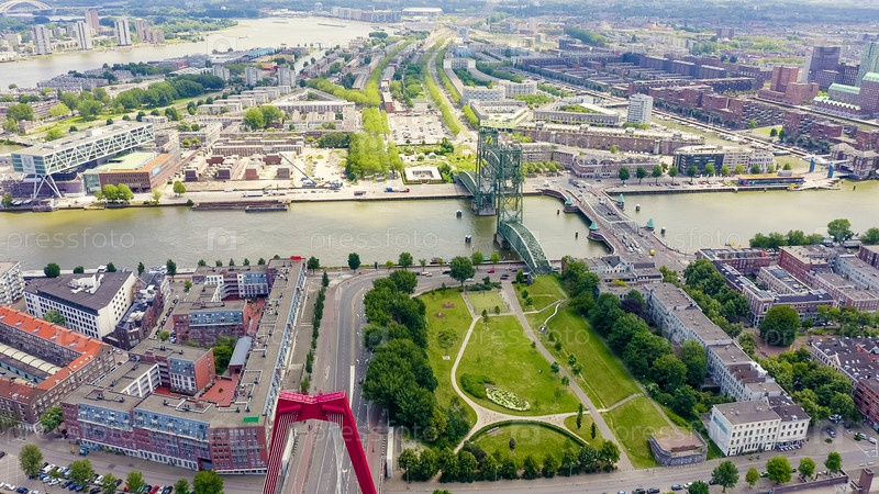 Роттердам, Нидерланды. Роттердамские мосты - Висячий мост Вильямсбург, разводной мост Де Хеф и мост Конингиннебрюг, вид с воздуха
