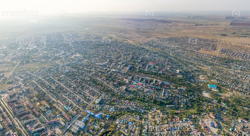 Элиста, Россия. Панорама города утром. С высоты птичьего полета